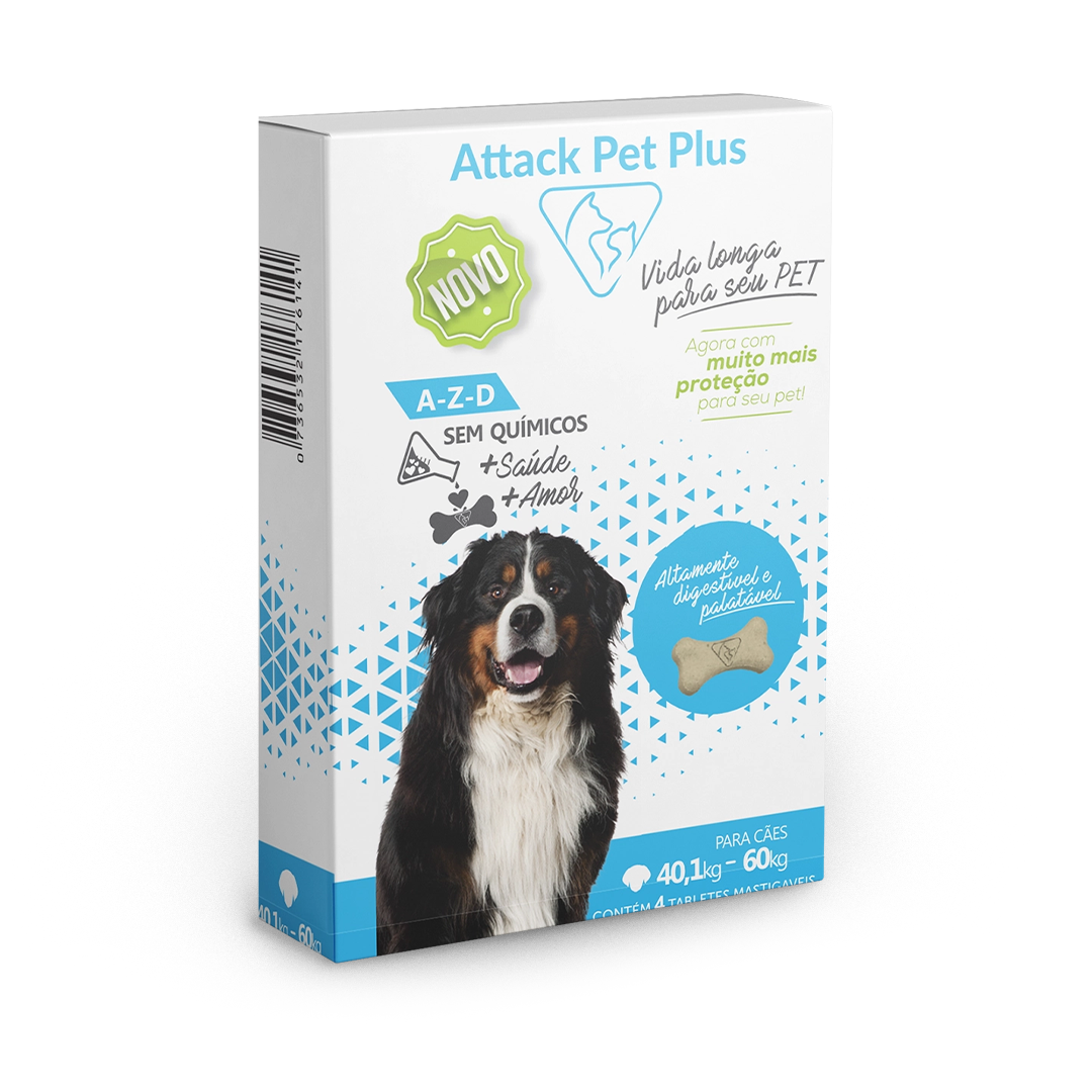O Attack Pet Plus 40,1 a 60 kg é ideal para cães de grande porte que necessitam de proteção eficaz contra pulgas, carrapatos e piolhos.